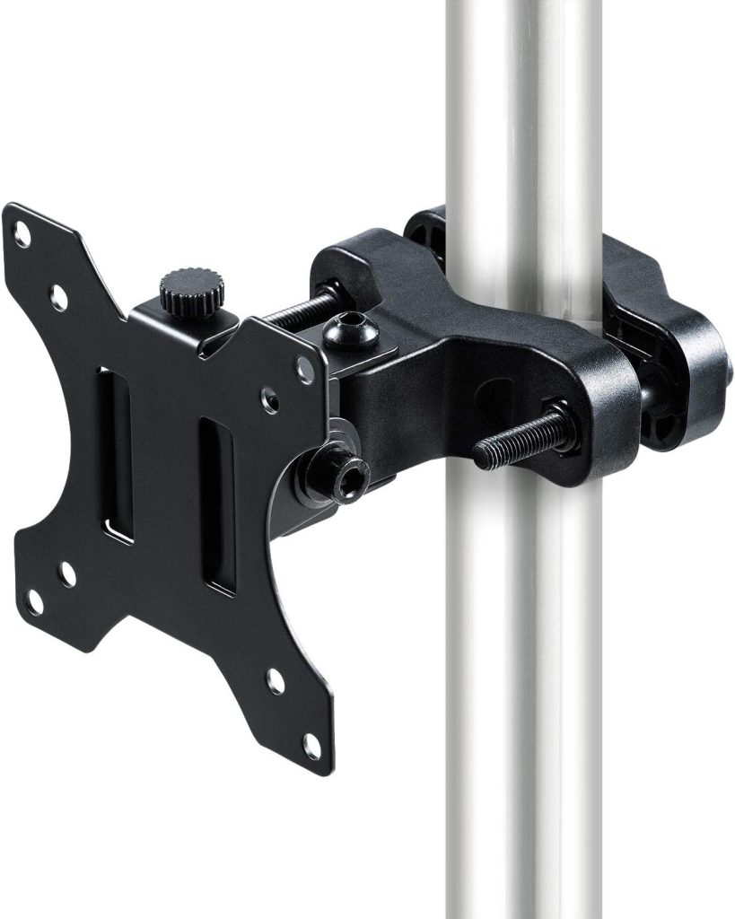 一般的な「太い」モニターアームだと対応できないことが多いですが、細めの円柱のモニターアームを使用している場合は、モニターアームのポール部分に取り付けるアダプターがあります。このアダプターを使用することで、モニターポールにミニPC本体を取り付けることができます。耐荷重的にも問題は無いです。
