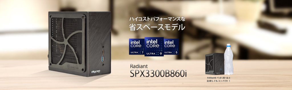サイコムではこれまでもミニPCとしてSPXシリーズを販売しており、当サイトでも人気機種でした。今回発売したSPX3300B860iはIntelの最新世代CPUであるCore Ultraシリーズを搭載しているのが特徴です。